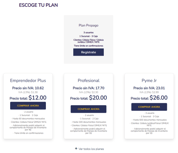 Escoja el plan de su conveniencia y presione el botón Regístrate, Ticontable le ofrece a usted un listado con los planes más vendidos pero si desea puede ver todos los planes que tenemos a su disposición haciendo clic en Ver todos los planes.