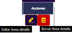 En el botón de Acciones, podrás elegir entre Editar o Borrar la línea de detalle.