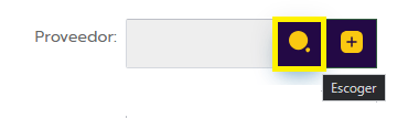 En el campo Proveedor, puedes seleccionar uno que ya esté registrado en tu sistema Ticontable haciendo clic en el botón Escoger. También tienes la opción de crear uno nuevo rápidamente.