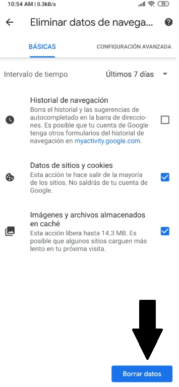 - Se abrirá una ventana emergente titulada «Borrar datos de navegación».