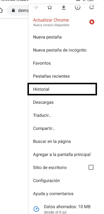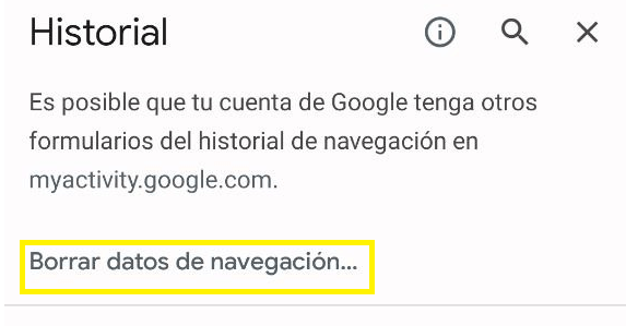 - Seleccione «Historial» y luego toque «Borrar datos de navegación…».