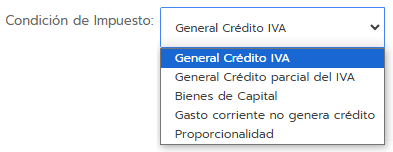 Condición de Impuesto: este campo debe ser consultado con su contador para determinar cuál es la condición de impuesto que corresponde a cada tipo de factura.