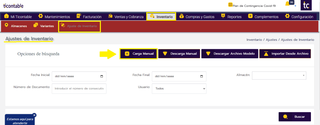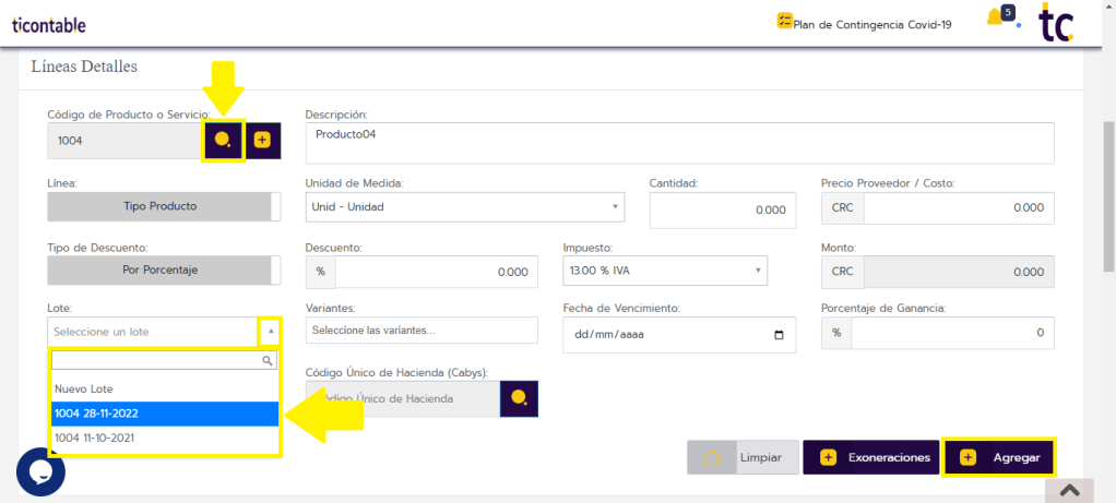 Ticontable permite que, al momento de cargar inventario —ya sea mediante carga manual o a través del módulo de compras—, usted tenga la opción de agregar el nuevo inventario a un lote existente en lugar de crear uno nuevo, si así lo desea.