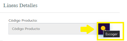 Debe hacer clic en el botón “Escoger” para que Ticontable le muestre el modal “Lista de Productos”, desde donde podrá buscar y seleccionar el producto que desea agregar al inventario.
